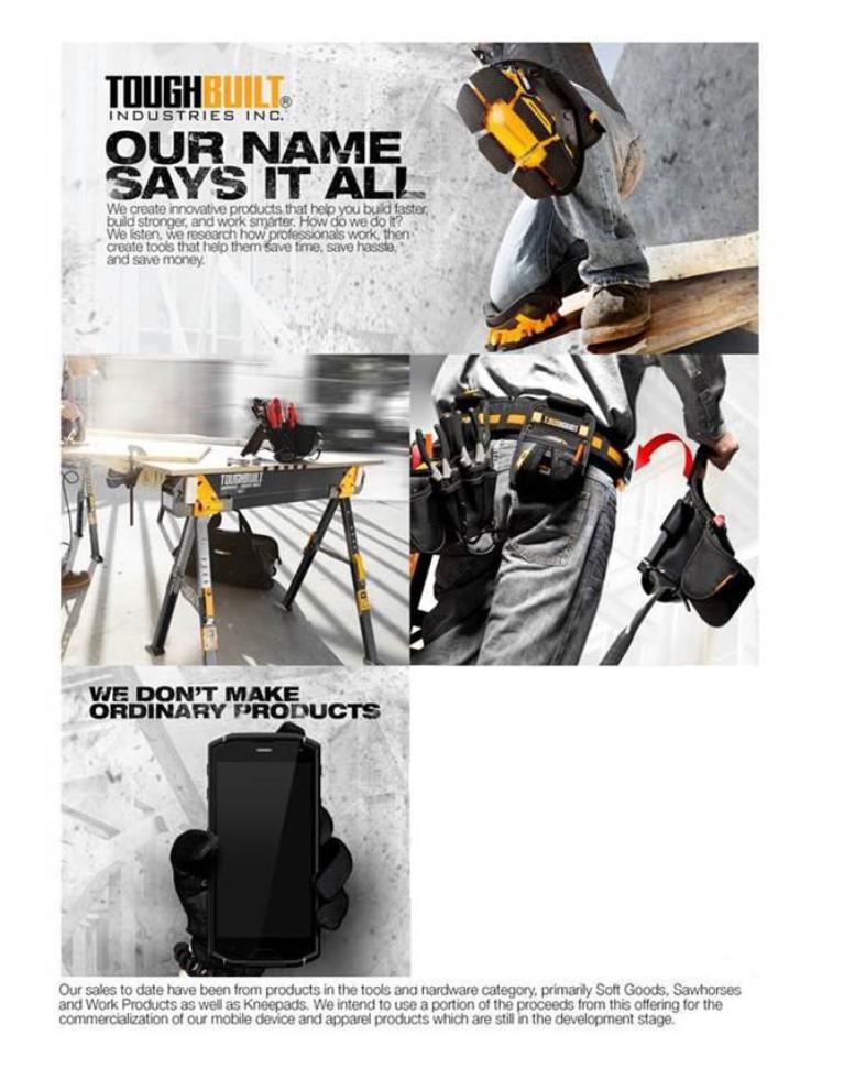 We market and distribute various home improvement and construction product lines for both the do-it-yourself (DIY) and professional markets under the TOUGHBUILT® brand name, within the global multi-billion dollar per year tool market industry. All of our products are designed by our in-house design team.